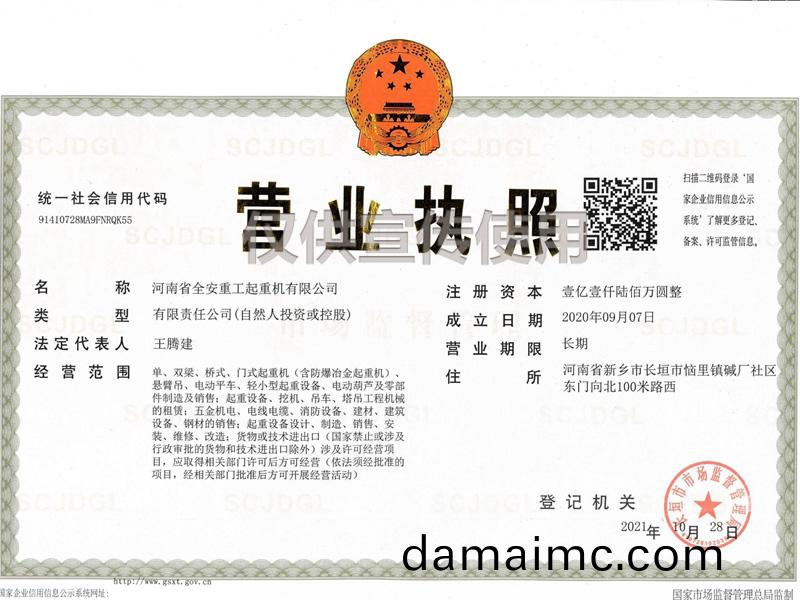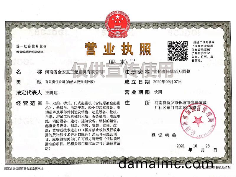 歡迎(ying)訪問河南省全(quan)安(an)重工起重機有限公司官方網站!